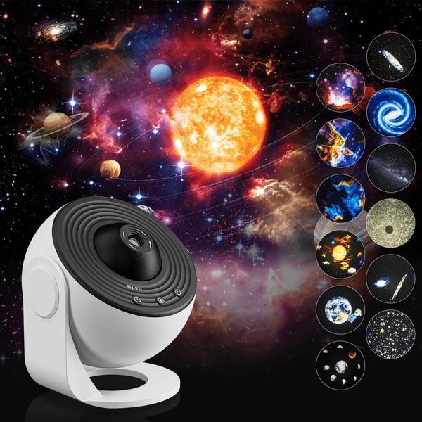• ??Galaxy 13 in 1 Projektor f??r Schlafzimmer?? Verwandeln Sie Ihr Zimmer in 13 atemberaubende kosmische Shows mit den mitgelieferten Filmdisks: 1: Sonnensystem, 2: Erde, 3: Mond, 4: Milchstra?e, 5: Galaxie, 6: Andromeda-Galaxie, 7: NGC4302-NGC4298, 8: Hubble Deep Field, 9: M60-UCD1, 10: Nordamerika-Nebel, 11: Mystischer Berg, 12: Kleine Magellansche Wolke und 13: die Galaxie (integriert).