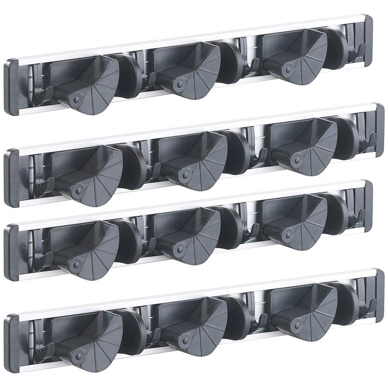 AGT Tool Holder: Set of 4 Wall Mount Rails for Brooms, Mops, Garden Tools etc. (Garden Tools Holder)