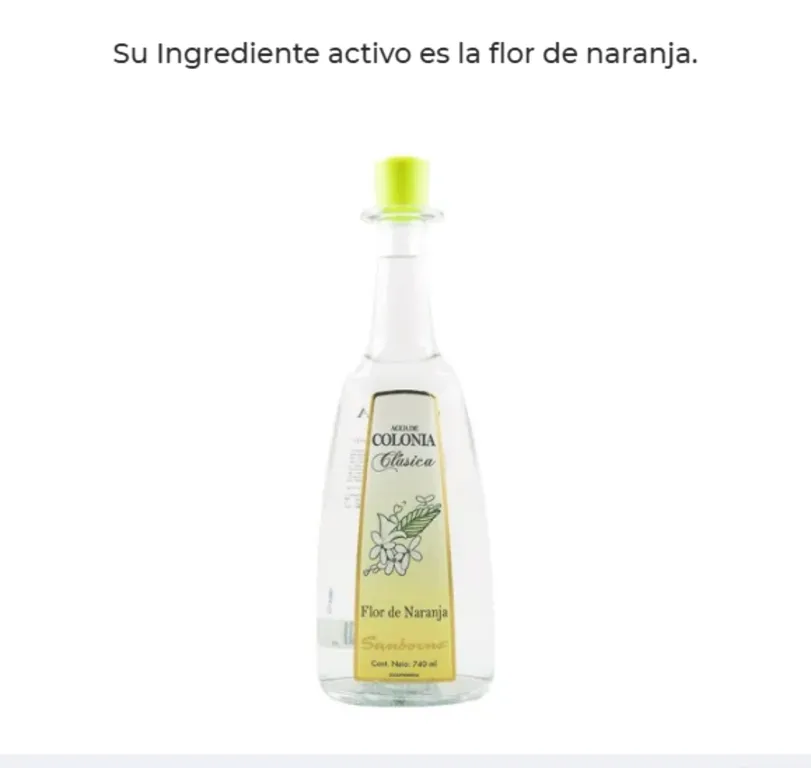 - Agua de colonia: fragancia clásica, fresca y ligera.