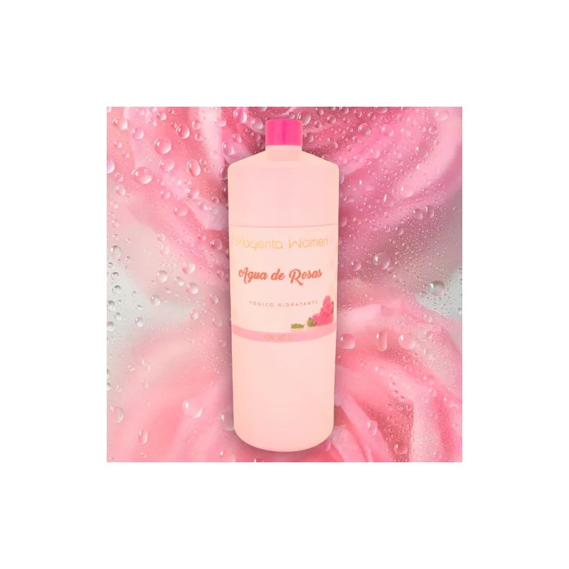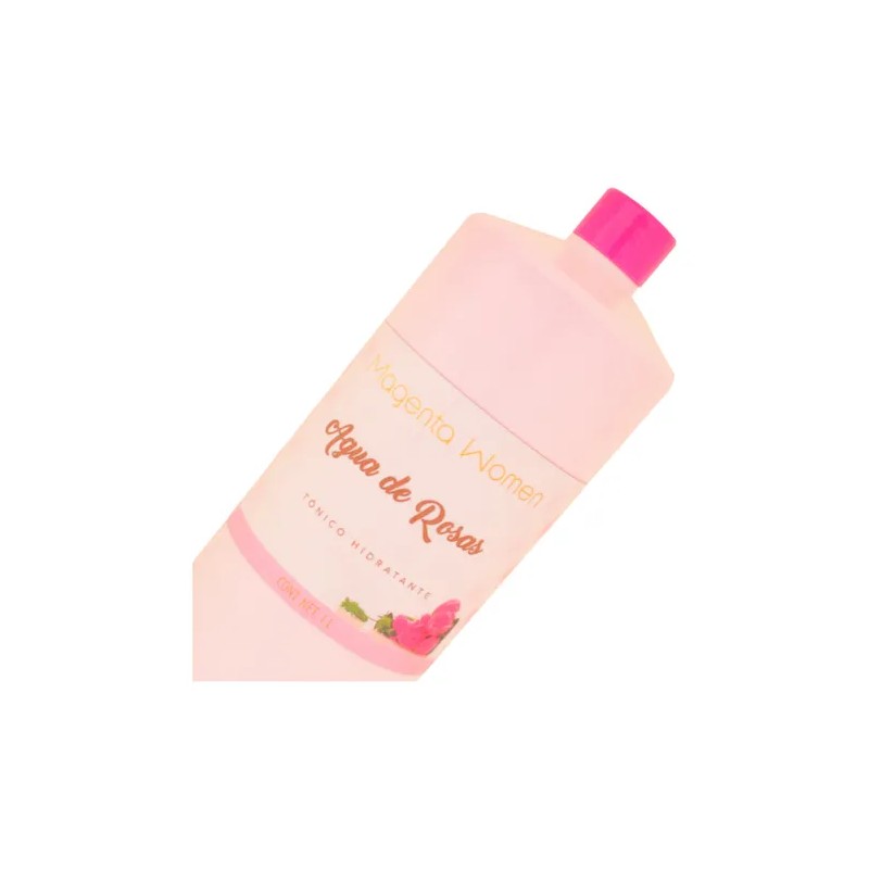 1 agua de rosas con 1000 ml de producto, envasado en PET con taparosca de la marca Magenta Women. (Exclusivo de uso cosmético)