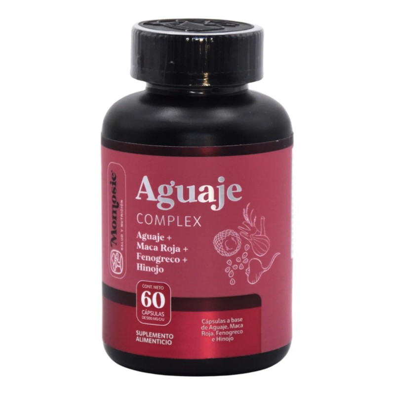 Este suplemento de Aguaje Complex es ideal para el bienestar de la mujer. Con una poderosa combinación de aguaje, fenogreco, hinojo y maca roja, apoya el equilibrio hormonal, mejora la apariencia de la piel, el cabello y contribuye al aumento de busto y glúteos.