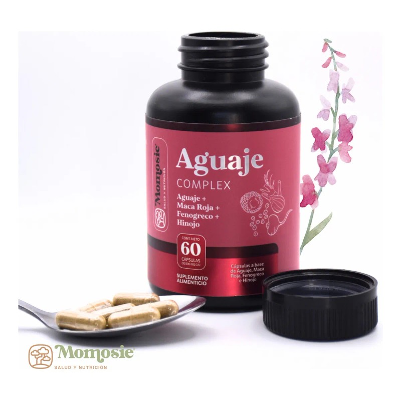 Aguaje Complex 60 Cápsulas | Fenogreco + Hinojo + Maca Roja | 100% Natural | Apoyo a Busto y Glúteo | Momosie