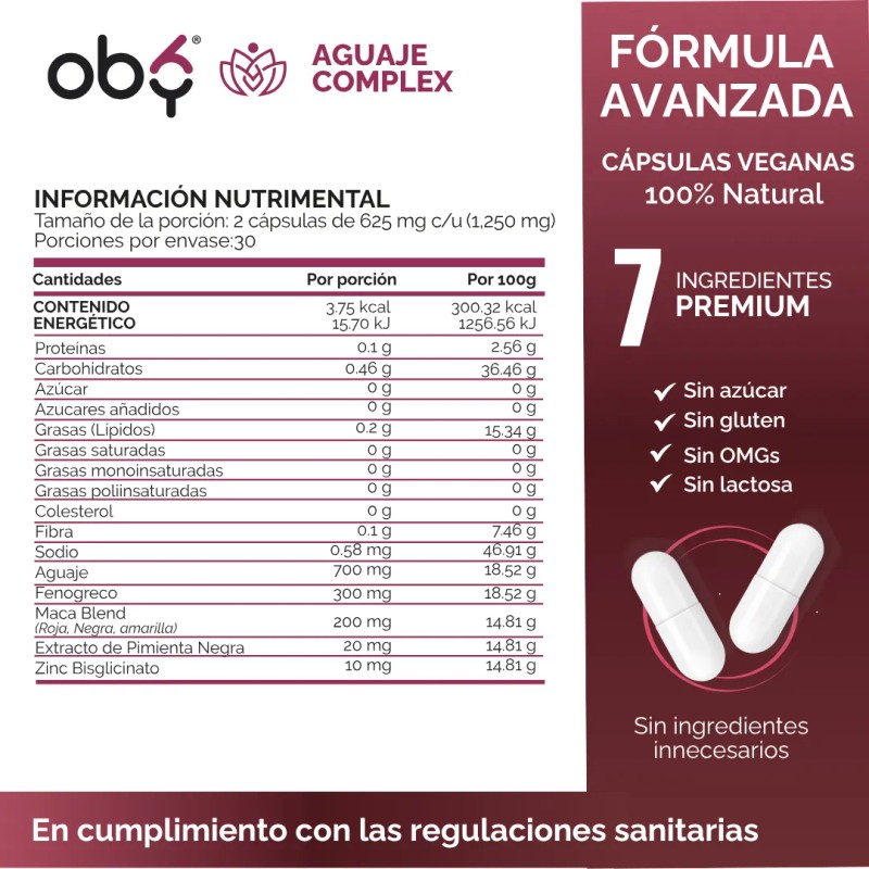 Aguaje Complex Fenogreco con Maca Peruana Y Zinc Potenciado con Piperina para Alta Absorcin Frmula Avanzada de Suplementos y Vitaminas Mujer Oby