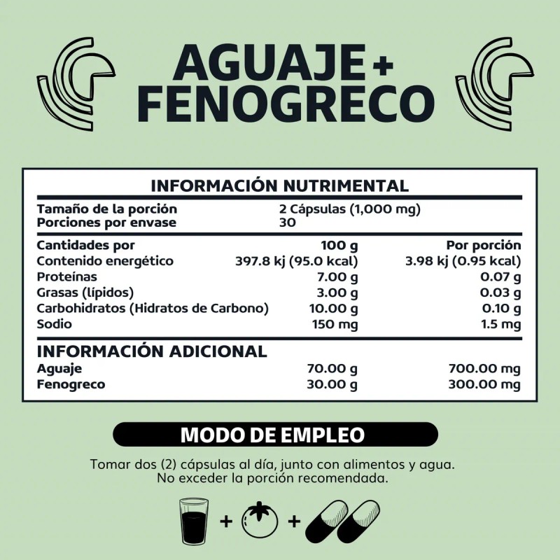 - Con 60 cápsulas por envase, este suplemento es fácil de incorporar a tu rutina diaria, ofreciendo una porción cuidadosamente dosificada para apoyar tu estilo de vida. Confía en Aguaje + Fenogreco 1000mg Premium y disfruta de un producto diseñado para brindarte calidad y bienestar en cada cápsula. Aviso legal