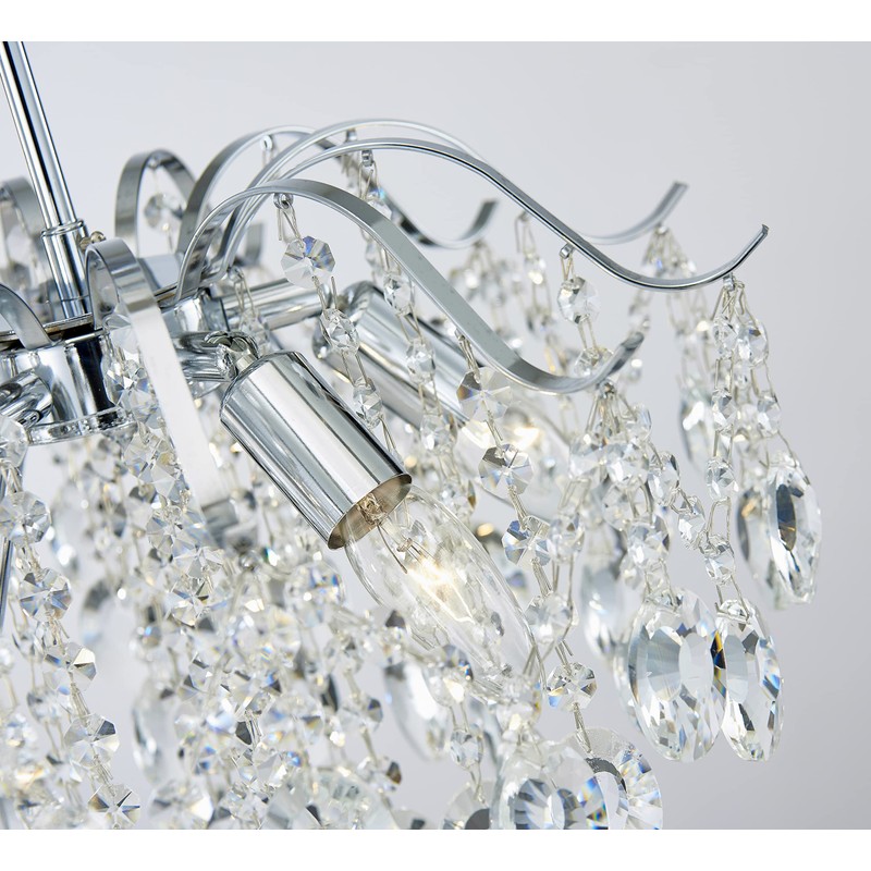 - Add Splendor And Style To Your Home Décor- This crystal chandelier light is full of glamour and sparkle and finished in a gleaming chrome for added shine. Add timeless elegance to your home space with this clear crystal chandelier and its sparkling crystal chains and pendants provide plenty of sparkle.