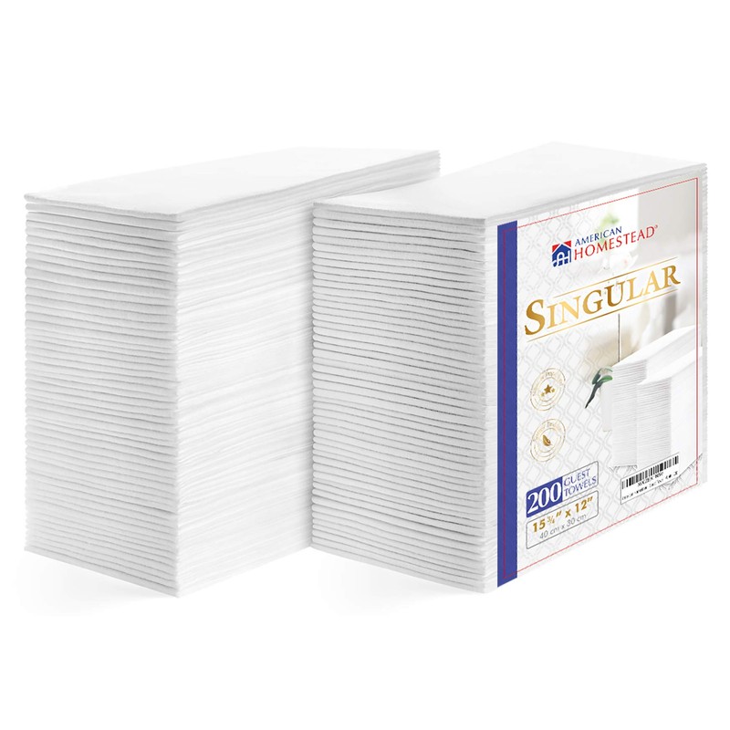 AH AMERICAN HOMESTEAD Disposable Paper Hand Towels for Bathroom - White Guest Napkins - Linen-Like Bulk Wipes - 15.5" x 12" - Ideal for Wedding Reception or Dinner Party (200 Count - Smooth Crisp)