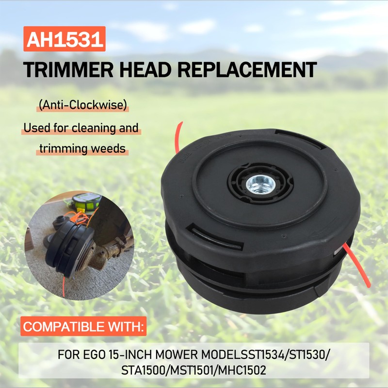 • AH1531 Replacement Rapid Reload Plus Trimmer Head for EGO 15-Inch String Trimmer Models STA1500/MST1501/ST1534/ST1530/MHC1502 Anti-Clockwise,Black