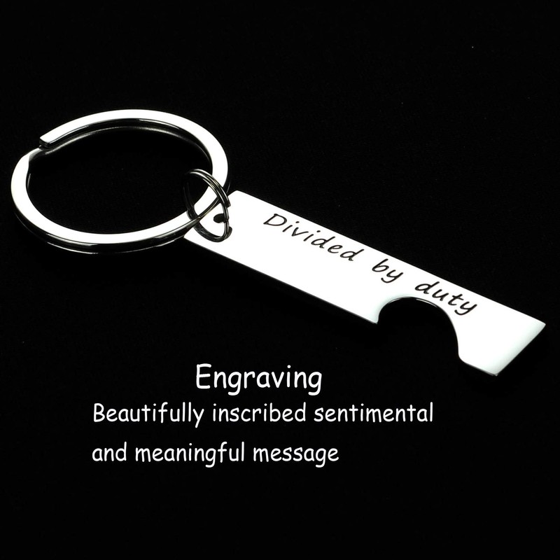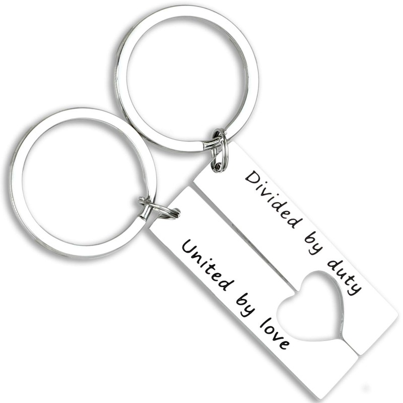 - 💗💗Exquisite Couples Keychain💗💗---- Engraved with " Divided by Duty / United by Love". Served as a reminder of your love to all the couples who have a significant other in the military. No matter how far you go, no matter where you go, my heart is always with you.It delivers you best wishes to your special lovers and family members! Keep one and give the other to your hero. Perfect for Wedding, Anniversary, Valentines Day, Birthday, Christmas, Thanksgiving Day or other special day.