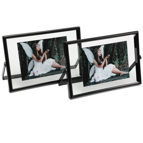 AhaGo Black Floating Frame (4"x6", Horizontal), 2 Set, For Picture 3.5x5, 2x3, 1x2, Tabletop Mini Photo Frames, Classy for Valentine's Day, Wedding or Birthday