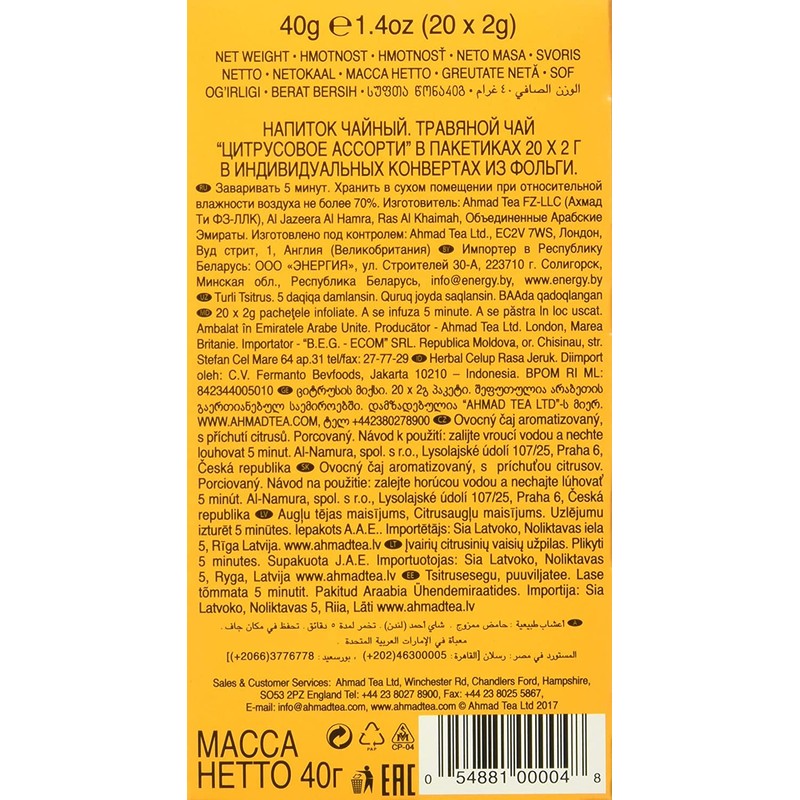 Ahamd Tea : Mixed Citrus : Box of 20 Tea Bags