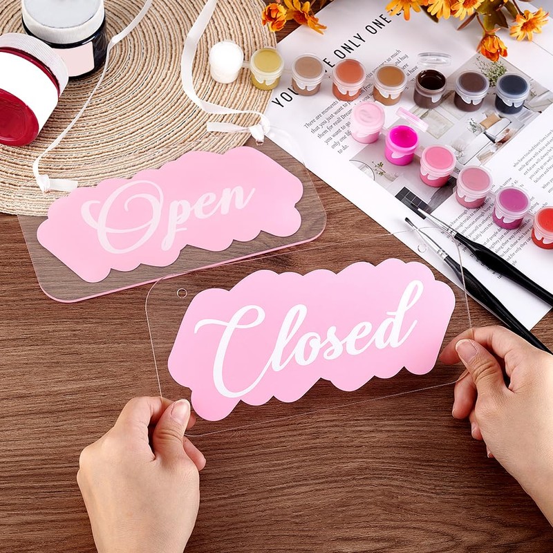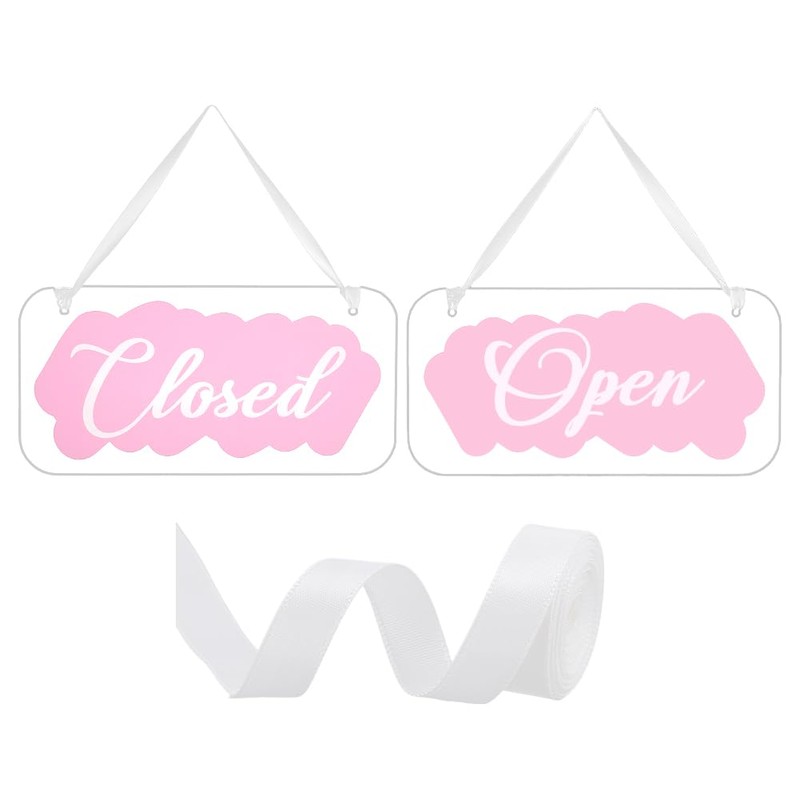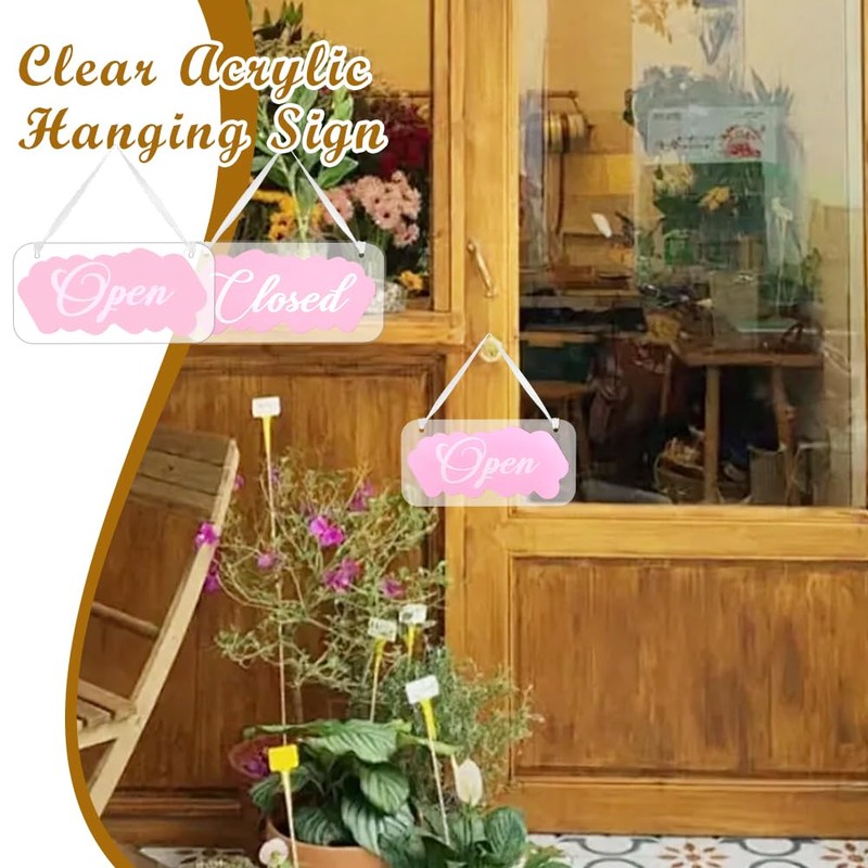 AHANDMAKER 2Pcs Open/Closed Signs, Acrylic Clear Open/Closed Hanging Door Signs with Ribbon, Reversible Style for Restaurant Window Office Bars Shop, 7.9 x 3.9 Inch
