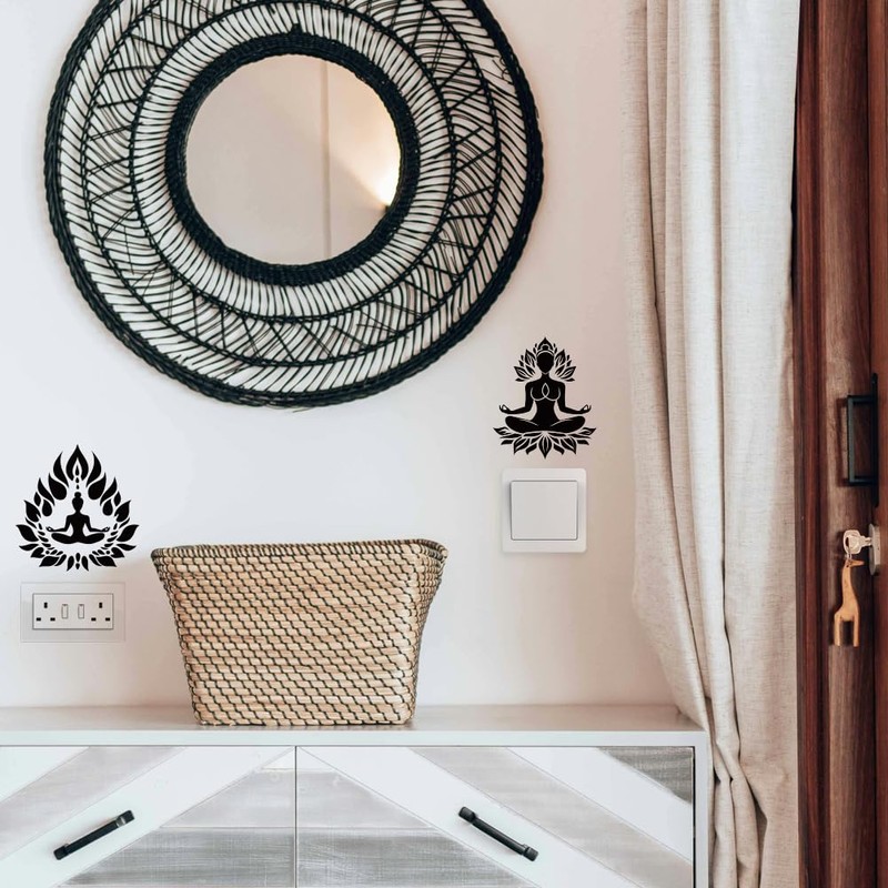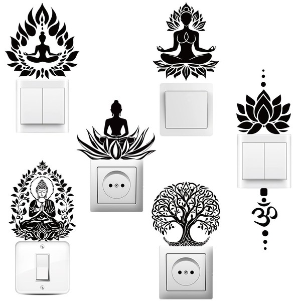 - Mindful Spiritual Design: These 6 light switch stickers are crafted with meaningful spiritual motifs. Featuring serene meditating figures, lotus flowers, and motifs like the tree of life, they exude a sense of peace and mindfulness. These intricate designs create an atmosphere of tranquility and spiritual connection