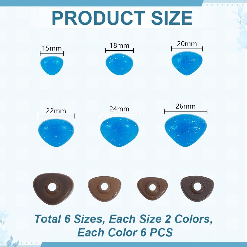 - Package Include: You will receive 72 plastic safety noses with pink and blue colors, covering six sizes from 15 to 26mm, each 6pcs, in sufficient quantity to meet your various use needs
