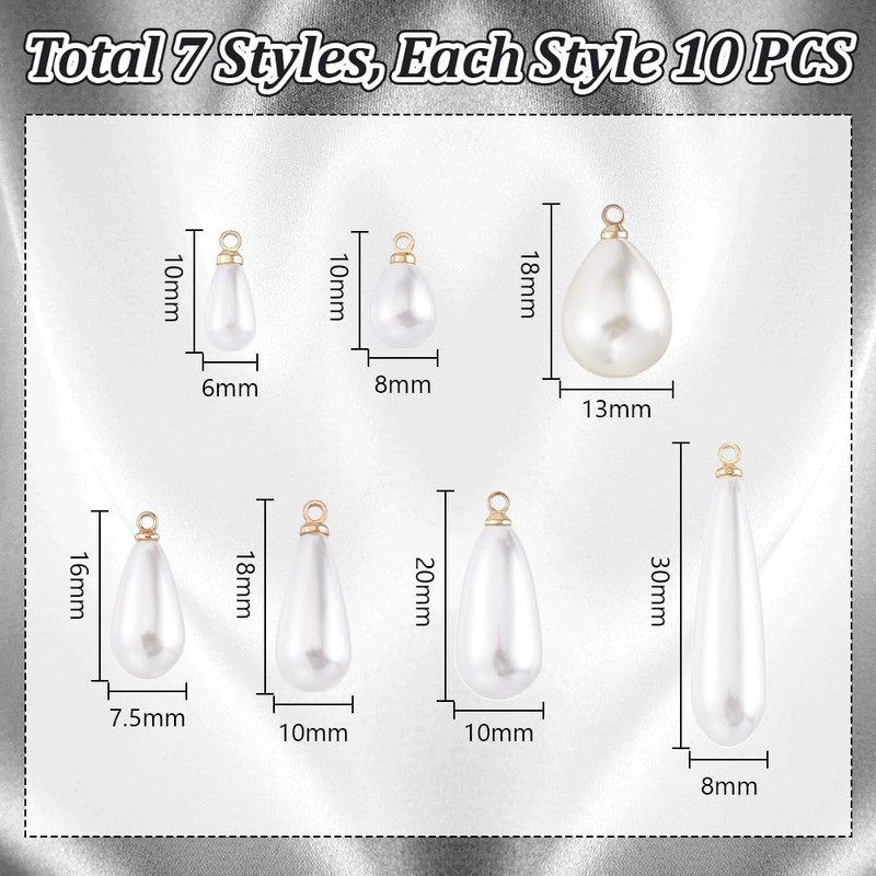 - Value pack: you will receive 70 pieces faux pearl drop pendants in 7 different styles, 10 pieces of each style, sufficient quantity for your daily needs for making and sharing DIY jewellery