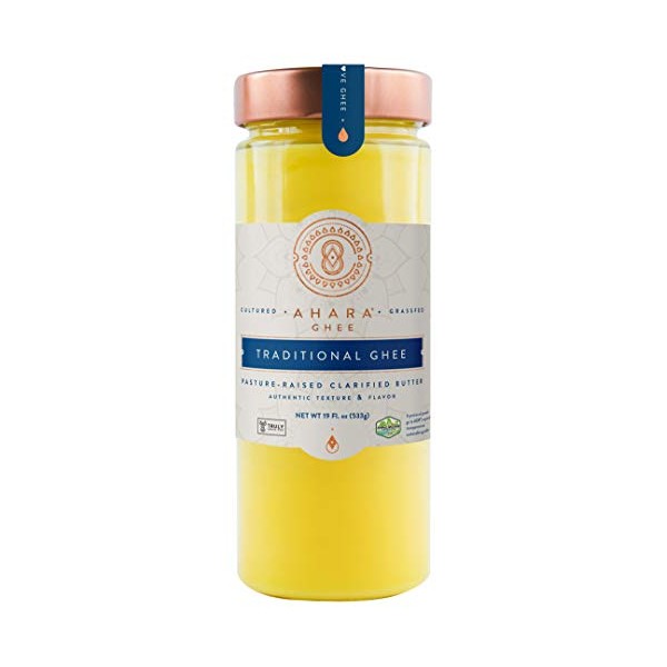 Ahara Rasa Truly Grassfed Traditional Ghee, 100% Kosher. Lactose & Casein Free USDA . No Salt, No GMOs. Made in USA. Animal Welfare Approved, 19oz