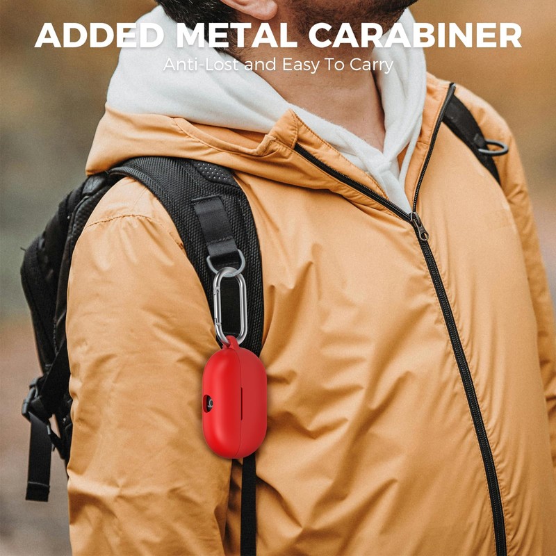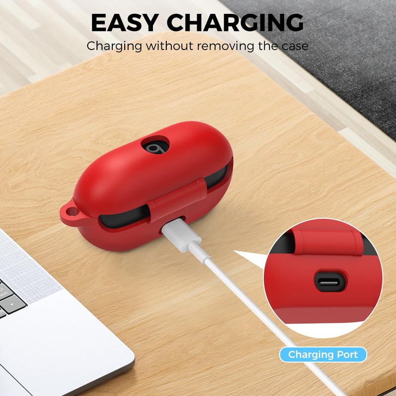 AhaStyle Silicone Case for Beats Solo Buds (2024) [Added Metal Carabiner] Shockproof Full Protective Skin Case Cover Compatible with Beats Solo Buds 2024 Wireless Earbuds (Red)