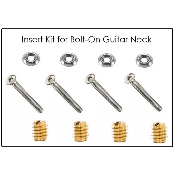 ahc STAINLESS STEEL Screws (4) Insert Kit for Bolt-On Guitar Neck Upgrade - Complete