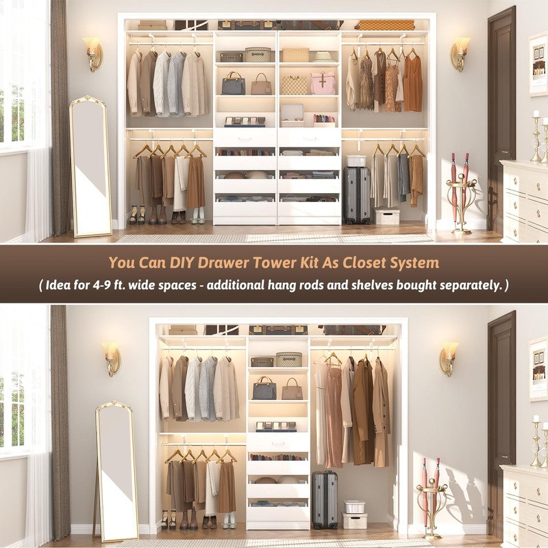 Aheaplus 21.3" Closet System with 4 Drawers, Wood Closet Organizer with Open Shelves, Modular Closet Drawers System Tower, Walk-in Closet Small Closets Wardrobe, Tall Storage Cabinet Unit, White
