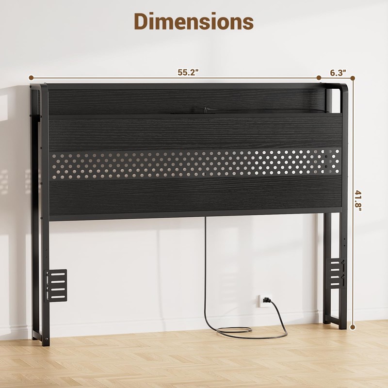 - LED Lights & Charging Station: Upgrade your bedroom with this versatile Full Size headboard. The built-in LED lights create a warm, ambient glow to set the perfect mood, while the convenient USB port and outlet keep your devices powered up and within reach