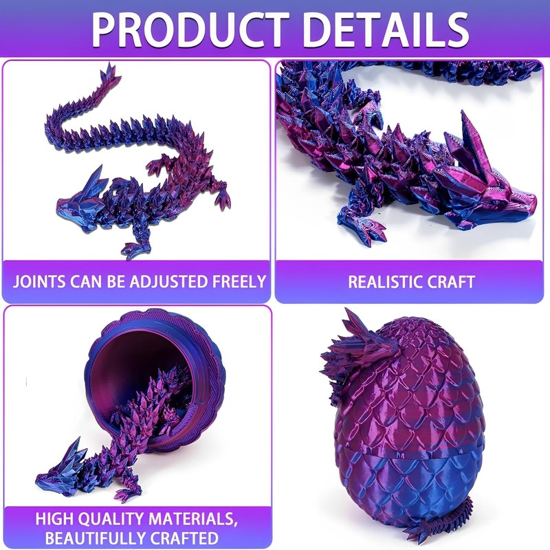 • Dimensions and packaging: you will receive 1 articulated crystal dragon and 1 dragon egg, the dragon is 22 cm/8.66 inches, the egg is 8.5 cm/3.3 inches. The 8.66 inch dragon is artfully crafted with stunning 3D printing technology, making it a perfect decoration piece for your home or office