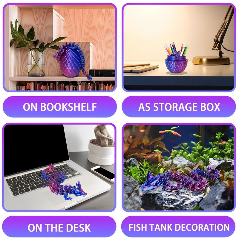 AHEJIOO 3D Printed Moving Dragon Toy, Easter Surprise Egg, 3D Printed Dragon ...