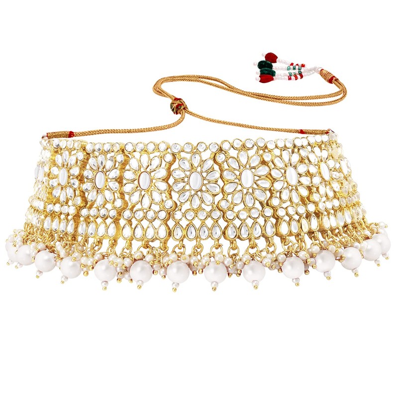 Aheli Faux Pearl Choker Necklace with Earrings Indian Traditional Bollywood Jewelry Set for Women Girls (White)