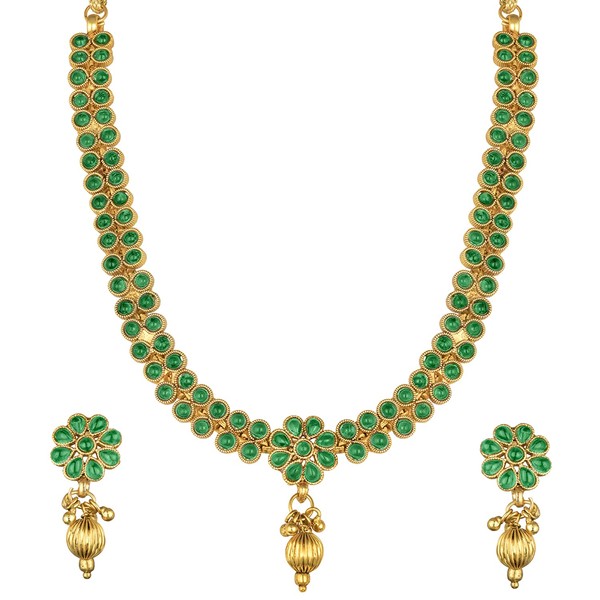 - Dimensions : Necklace Length - 12 cm x Width 5 cm, Earring Height - 4.5 cm x Width - 2 cm, Weight - 56.9 gms