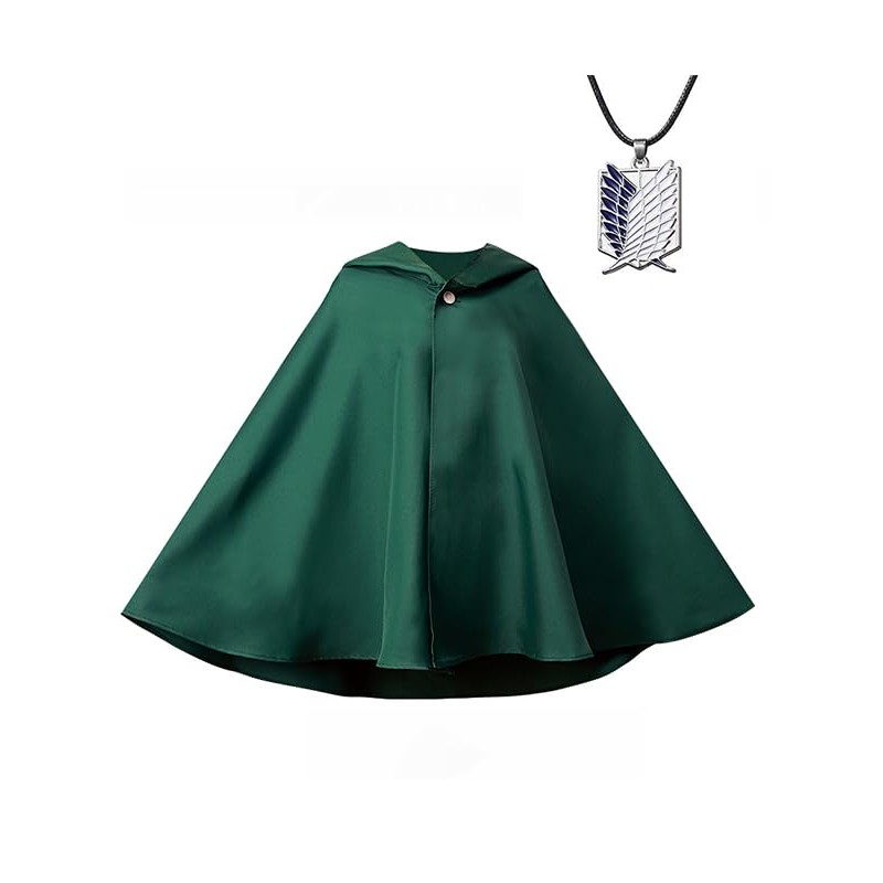 Ahfiwaso 29.9" Length Green Anime Cosplay Cloak, Cosplay Costume Wings Cape Hooded Cloak with Necklace, Green, Standard