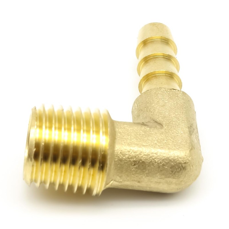 - Male 90 degree elbow hose barb fitting is made of brass.