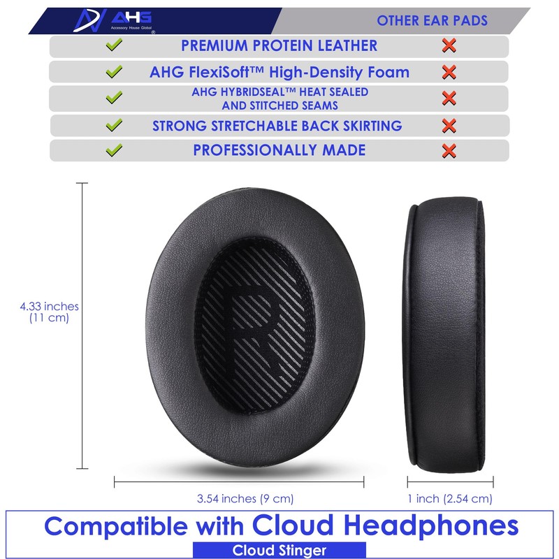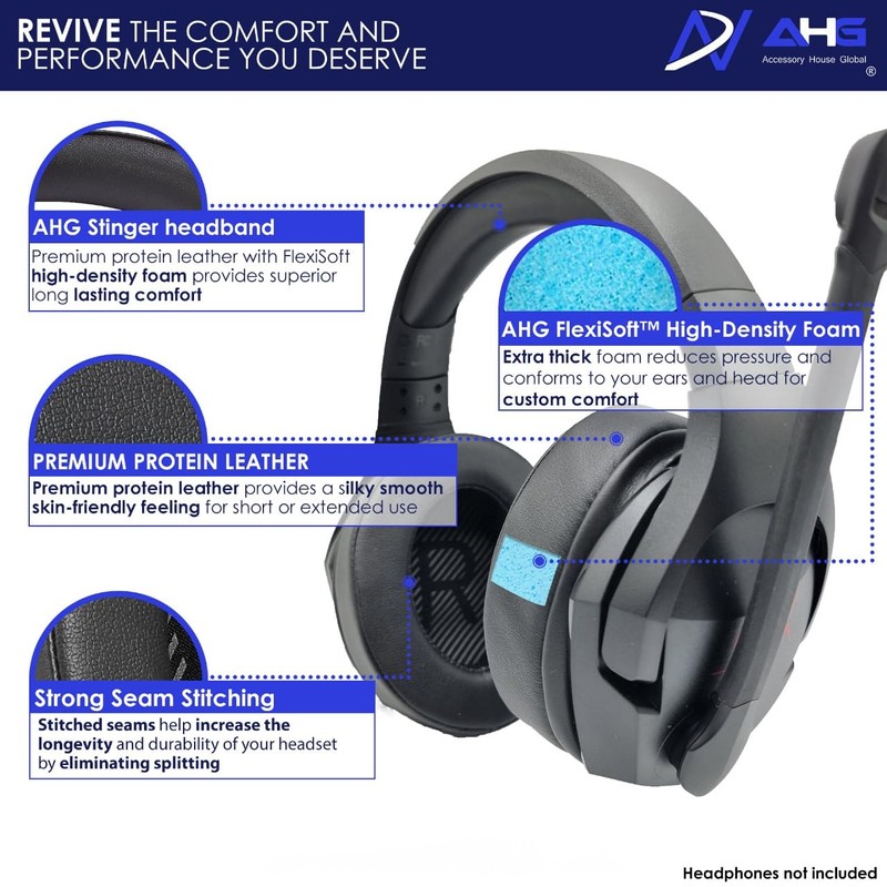 AHG Upgrade Premium Replacement Cloud Stinger Ear Pads Cushions and headband cover. Compatible with Kingston HyperX Cloud Stinger headset. Premium Protein Leather | Extra Thick AHG FlexiSoft Foam