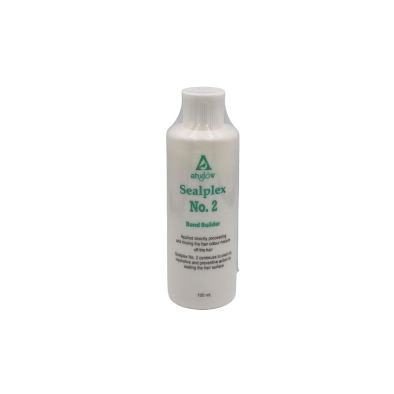 Ahglow Sealplex No. 2 BOND BUILDER reduces the damage to hair during chemical treatments. Rebuilds, re-links and seals disulfide bonds. Restores hair strength and elasticty. 120ml (4 fl oz.) bottle