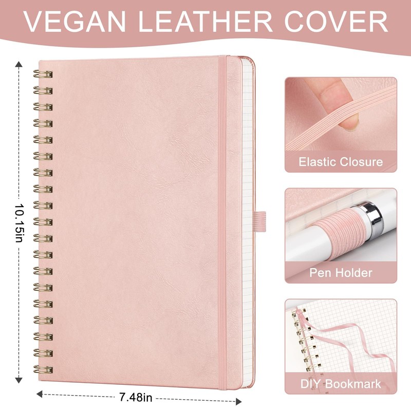- HARDCOVER LEATHER JOURNAL: This spiral notebook features a durable, waterproof vegan leather cover that protects your notes from damage. The double-wire binding allows for easy folding and 180° lays flat for convenient writing