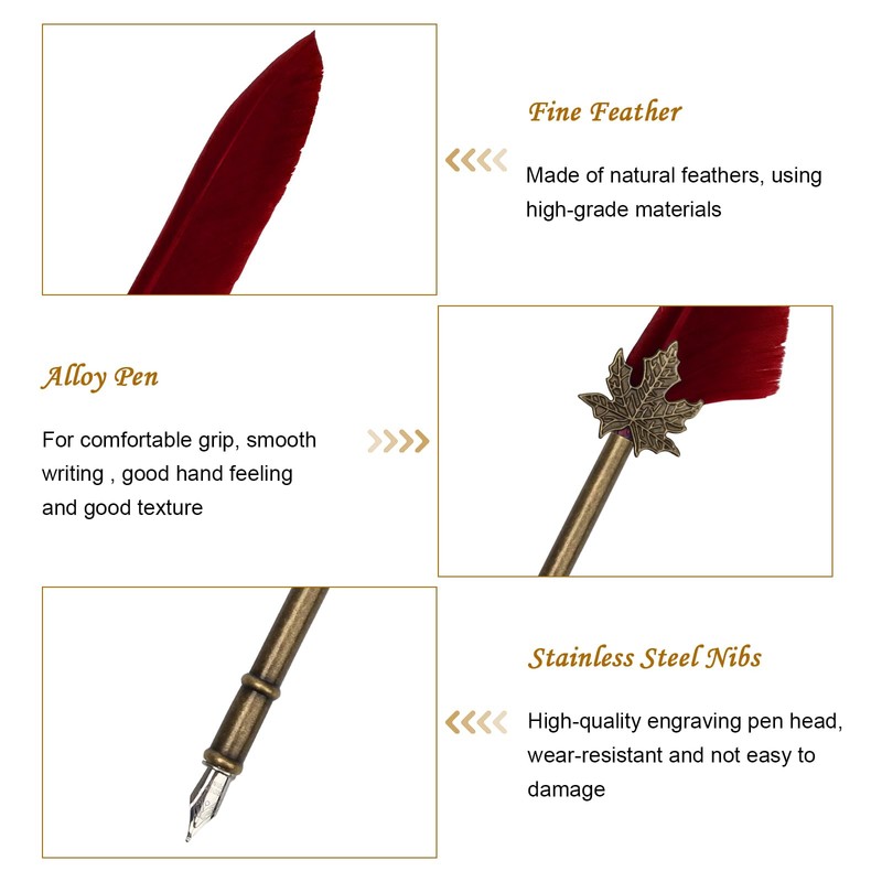 • 【Best gift】Feather quill pen symbolizes wisdom, diligence, respect and self-cultivation. The exquisite design and antique style is a very meaningful gift, Can be gifted to your parents, relatives or friends.