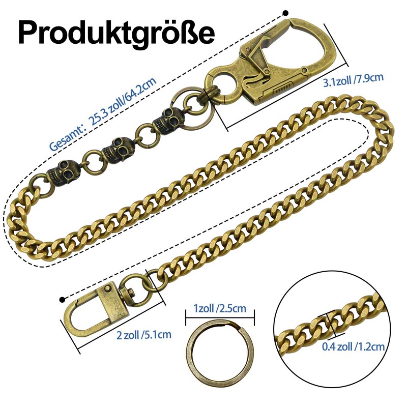 Ahiller Men's Wallet Chain with Carabiner, Heavy Skull Trouser Chain, Biker Anti-Theft Chain for Purse Chains, Key Chain and Jeans Chain, Llt-bk-bronze-1p