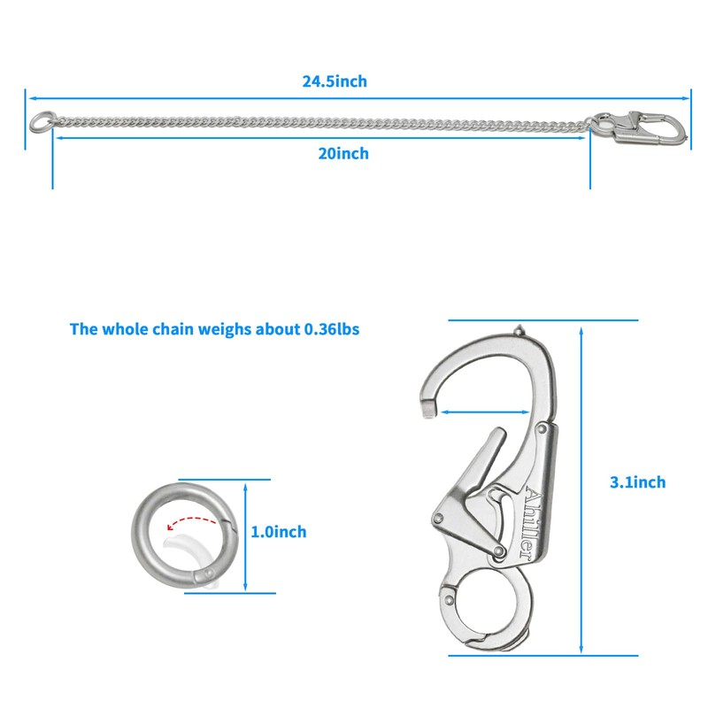 Ahiller Wallet Chain for Men, Lockable Carabiner with Tungsten Steel Taper, Heavy Duty Chain for Key Pocket Belt Jean (YK-Silver)