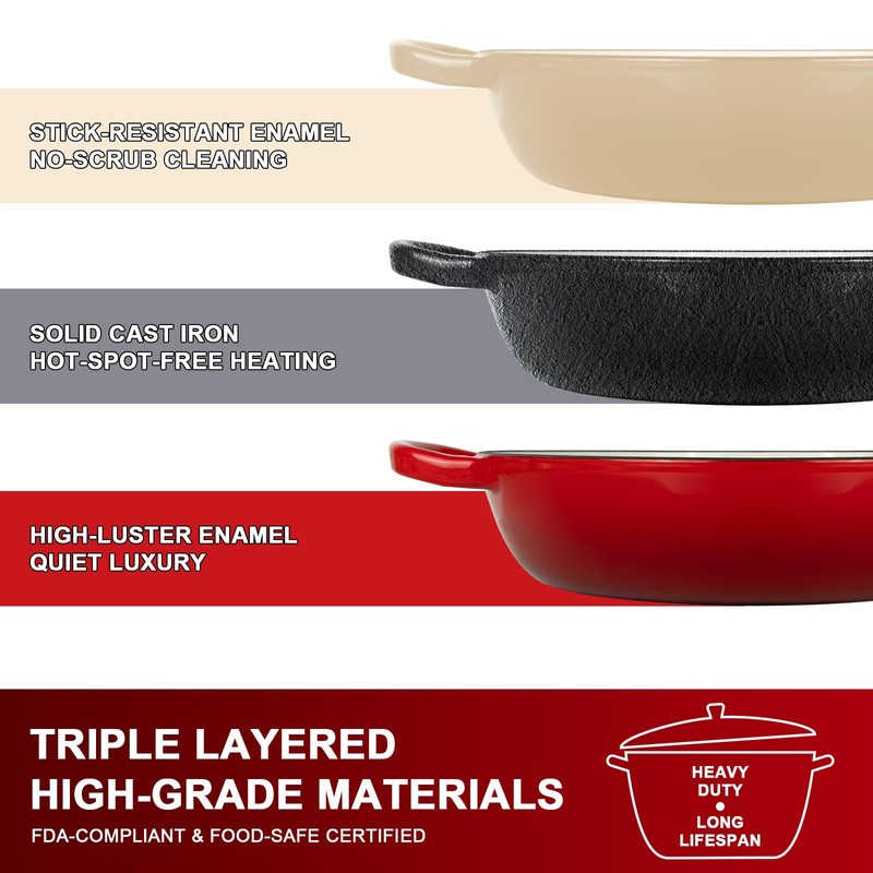 - GET A CRISPY BREAD CRUST EVERY TIME: Engineered for even heat distribution, our triple-layer enamel coating ensures a crispy golden crust and tender crumb. The dome lid locks in steam circulation—ideal for sourdough, whole-grain, and rustic boules.