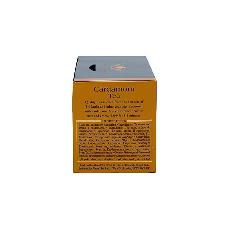 We at Ahmad Tea are proud to present our cardamom tea, an exquisite choice of selected black tea expertly blended and enhanced with the exotic flavor of cardamom to give a truly delightful cup of tea. A warming and relaxing experience to be enjoyed at any time of day, cardamom tea can be enjoyed with or without milk. For a truly eastern experience, it can be used to make the famous Indian chai tea.