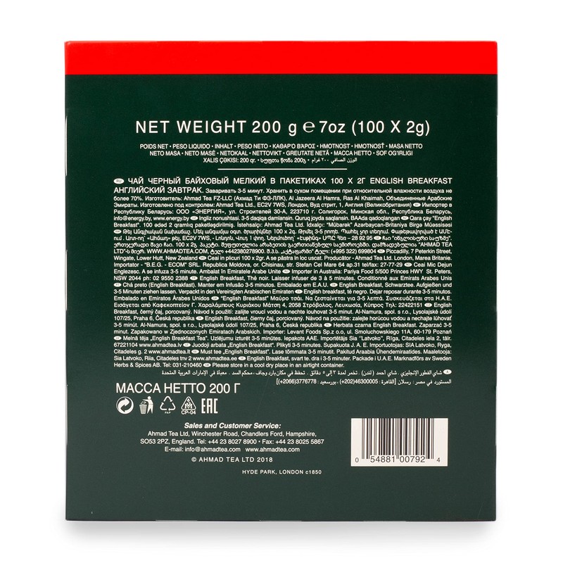 Ahmad Tea Black Tea, English Breakfast Teabags individually wrapped in foil, 100 ct - Caffeinated & Sugar-Free