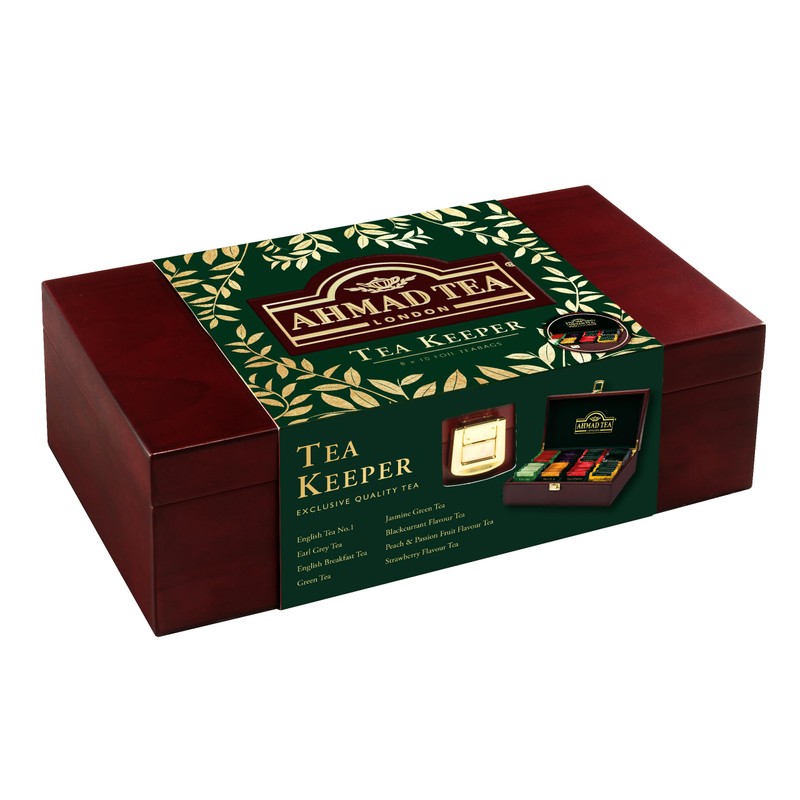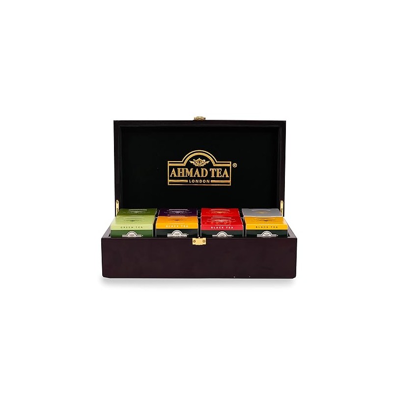 Ahmad Tea Keeper Wooden Box with 80-Count Assorted Tea Bags