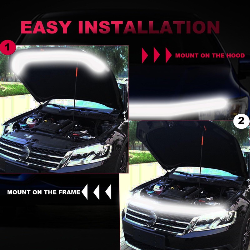 - 【Improve Safety Performance】 The 70'' car hood light strip has a high bright white light to enhance driving safety warnings in darkness or bad weather, effectively alerting oncoming vehicles and pedestrians and reducing traffic accidents.