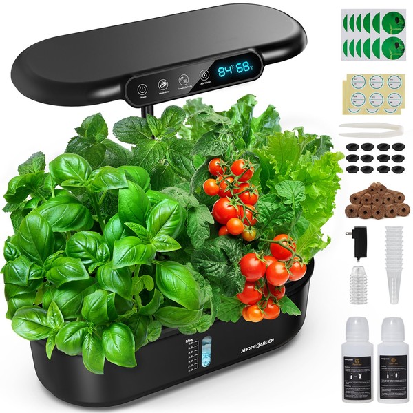 Ahopegarden Hydroponics Growing System kit: 12 Pod Indoor Herb Garden with Smart Environmental Detection,LED Grow Light,LCD Display,Hydroponic Planter for Vegetables,Herb,Lettuce,Home Gardening