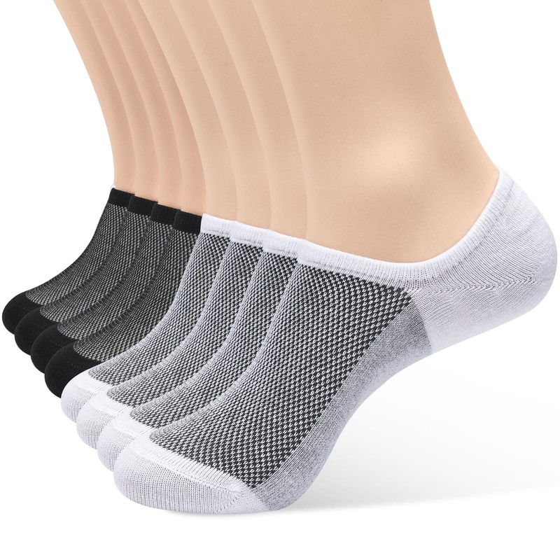 AHOVIT 8 Pairs Non Slip No Show Socks Womens and Mens Low Cut Invisible Liner Ankle Socks