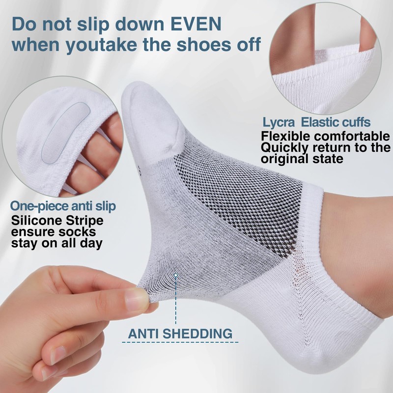 - 【High Quality Material】Our no show ankle socks are made of 85% Combed Cotton+12%Polyester+3%Spandex blend,soft to the touch and stretchy.The Ergonomically designed well made cuff make socks fit your feet perfectly, will Not too tight,not too loose neither.