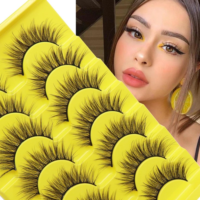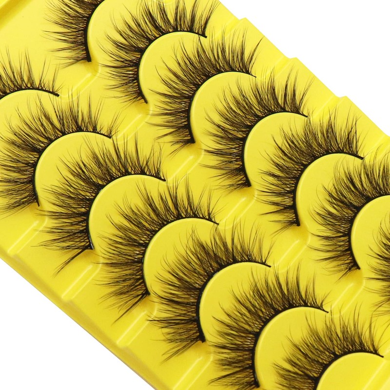 Ahrikiss Eyelashes Cat Eye Lashes 7 Pairs Fluffy False Eyelashes Soft Wispy Lashes Natural Look 14mm Reusable Faux Mink Lashes|6D30