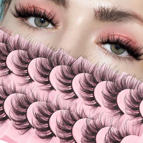 Ahrikiss Lashes Fluffy False Eyelashes Cat Eye Lashes Natural Look 8 Pairs D Curl 5D Volume Fake Eyelashes Wispy Faux Mink Lashes Soft Lightweight Strip Lashes (W3)