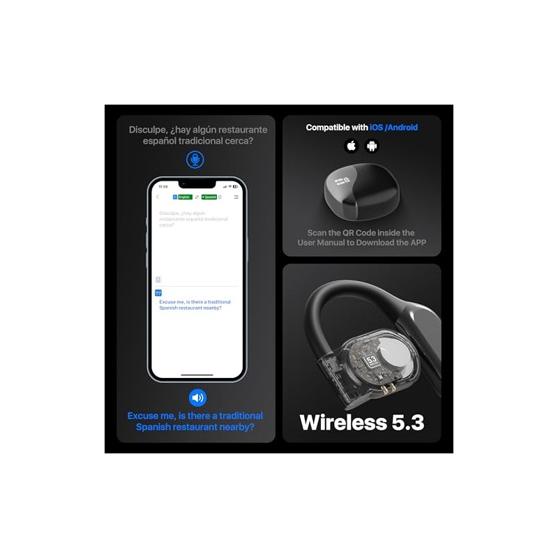 - Multi-language translation: High-precision 169-language translator earbuds, real-time two-way translation and certain off-line package requires in-app purchase including Chinese, English, Japanese, Korean, Russian, German, French and Spanish.