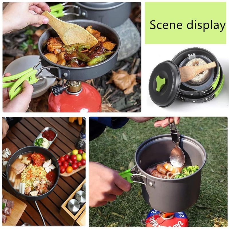 Ai-OUMLEEF Non-Stick Lightweight Camping Cookware Mess Kit, Aluminium Alloy, Green, Perfect for Camping, Hiking, Backpacking, Picnic