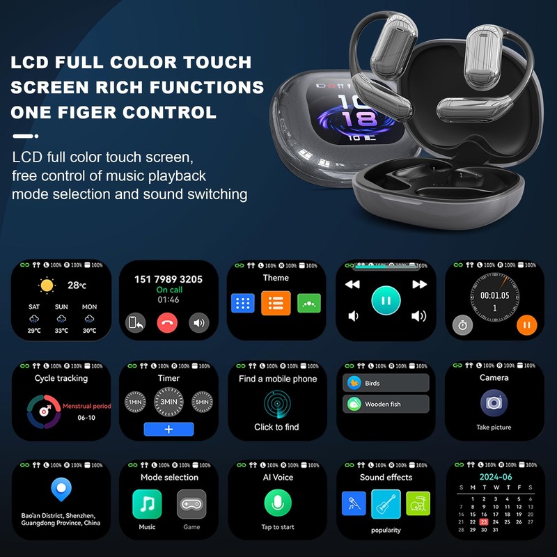 - 16 App Features for Convenience: With a full-color LCD touchscreen and 16 app features, these electronic foreign language translators offer easy access to message notifications, GPS tracking, camera control, and more. Stay connected, organized, and entertained with your translator earbuds—all controlled via the app.