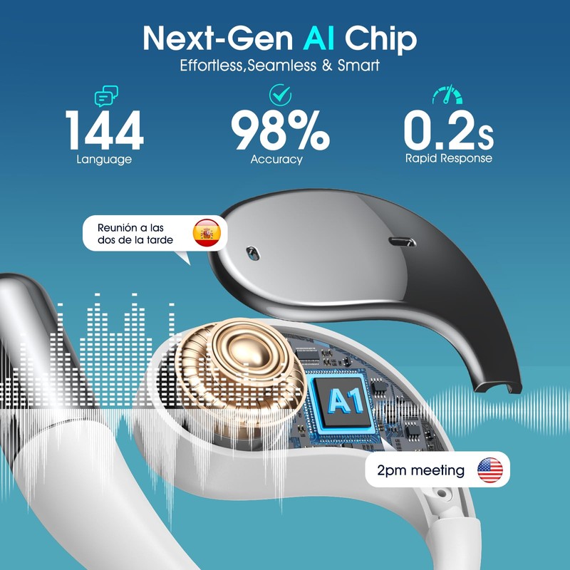 - 【Superior Sound Quality & Ultimate Comfort】Enjoy premium audio with AI language translator earbuds for translations, music, and calls. Designed with ergonomic OWS technology, these AI translation earbuds real time offer a pressure-free, secure fit for all-day wear. Perfect for anyone seeking crystal clear sound from a smart voice translator earbuds solution.
