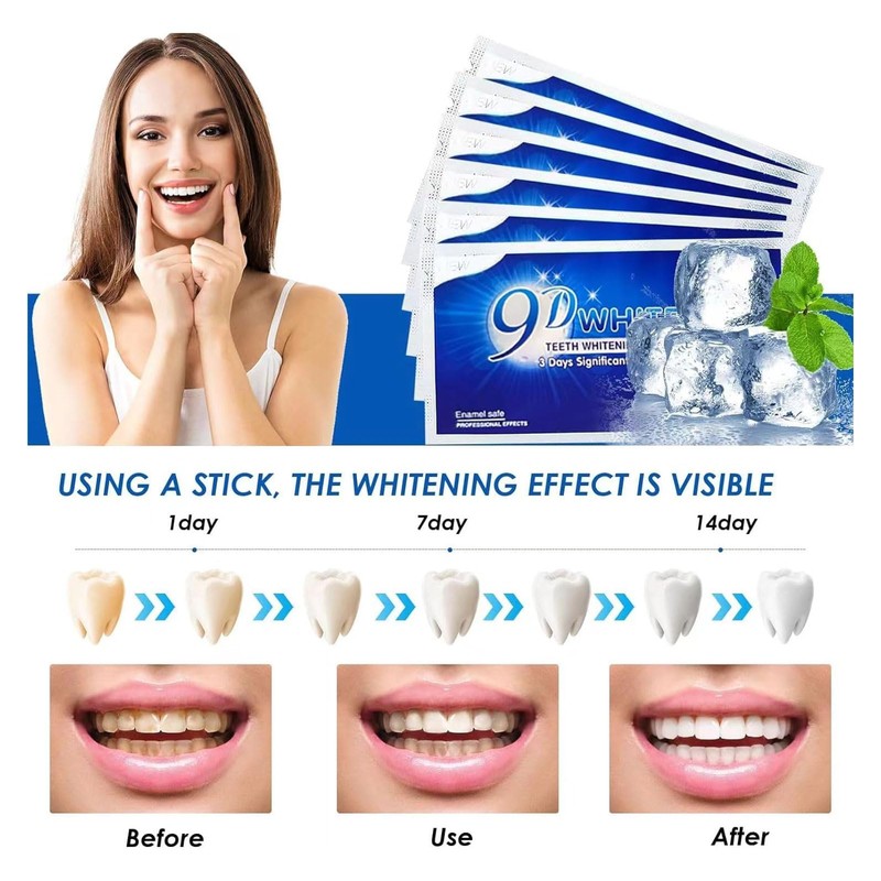 - [Cómodo y fresco] Viene con un sabor a menta suave y agradable, las blanqueamiento dental ultradelgadas y suaves se adaptan muy bien a tus dientes. Puedes usarlo mientras miras televisión, lees un libro, tomas el metro, etc. En cualquier momento que quieras.